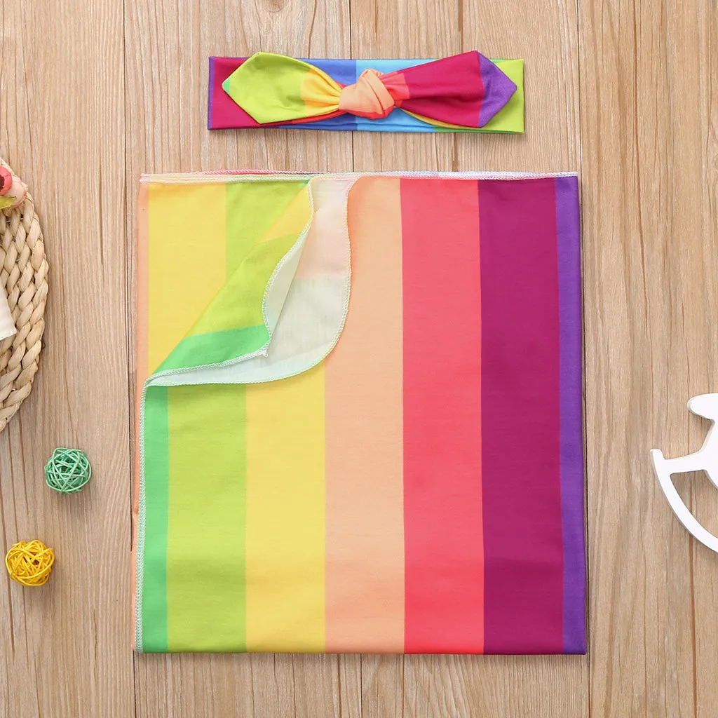 1Пеленка из поликарбоната + 1 повязка на голову Для малышей, с цветочным узором, пеленка Одеяло получения Одеяло Пеленальное Одеяло Обёрточная бумага повязка на голову