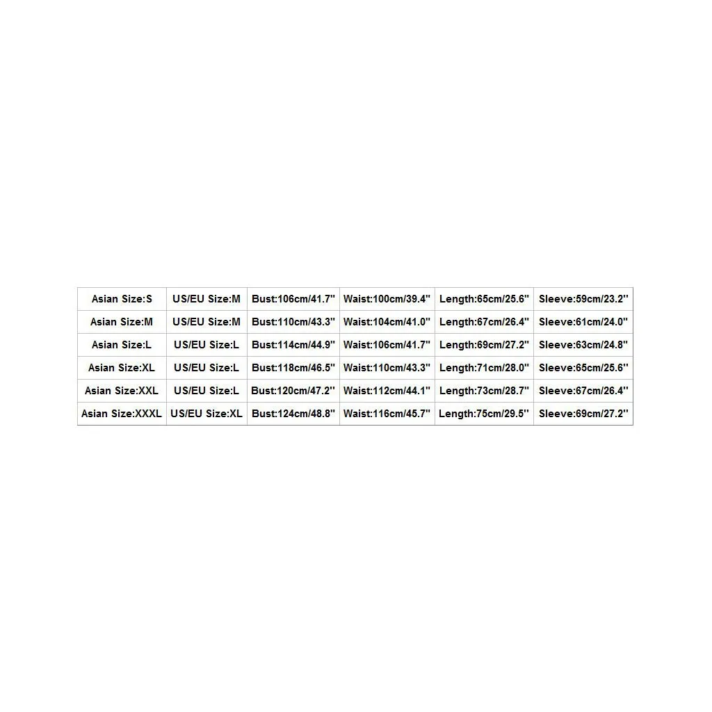 | Азиатский размер | Размер США/ЕС | Бюст | Талия | Длина | Рукав |