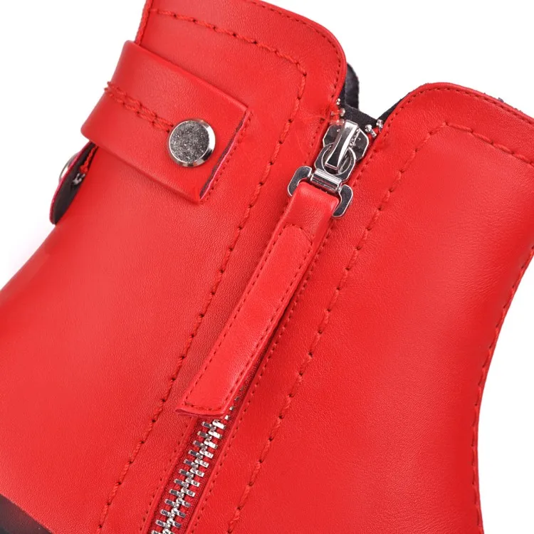 Ботинки женские кожаные на высоком каблуке с круглым носком молнии | Обувь