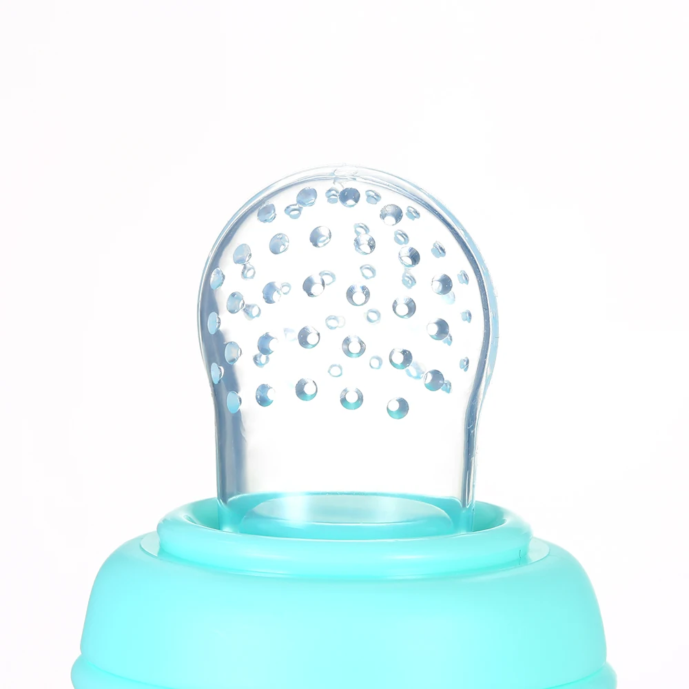 Мягкий и пищевой силиконовый чехол позволяет ребенку самостоятельно питаться фруктами и овощами через небольшие отверстия.