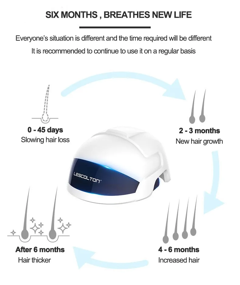 LESCOLTON устройство для роста волос является лазерным средством для наращивания волос с такими функциями, как контроль жирности, выпадение волос, рост волос и рост волос, встроенный 26 лазеров и 30 светодиодов. Лазер Плюс инфракрасный двойной высокотехнологичный, инфракрасный светильник, лазерное проникновение, может максимизировать активацию функции волосяного фолликула в коже головы, долгосрочное использование, Может сделать регенерацию волос. Светильник с эргономичным дизайном делает его более комфортным в носке; Обновляет четыре режима, чтобы выбрать подходящий вам режим; Встроенный интеллектуальный инфракрасный датчик светильник, изделие перестанет работать, когда не будет носить на голове.