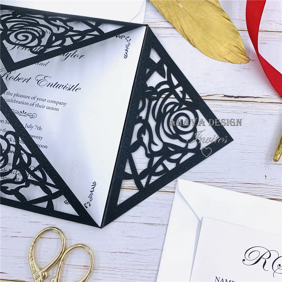 * 1 вырезанная лазером открытка (5,9*5,9 дюйма) * 1 вставка (пустая/Свободная печать) * 1 лента для живота (пустая/Бесплатная печать) * 1 конверт (слоновая кость/белый)