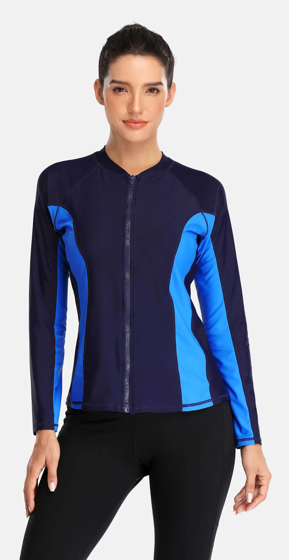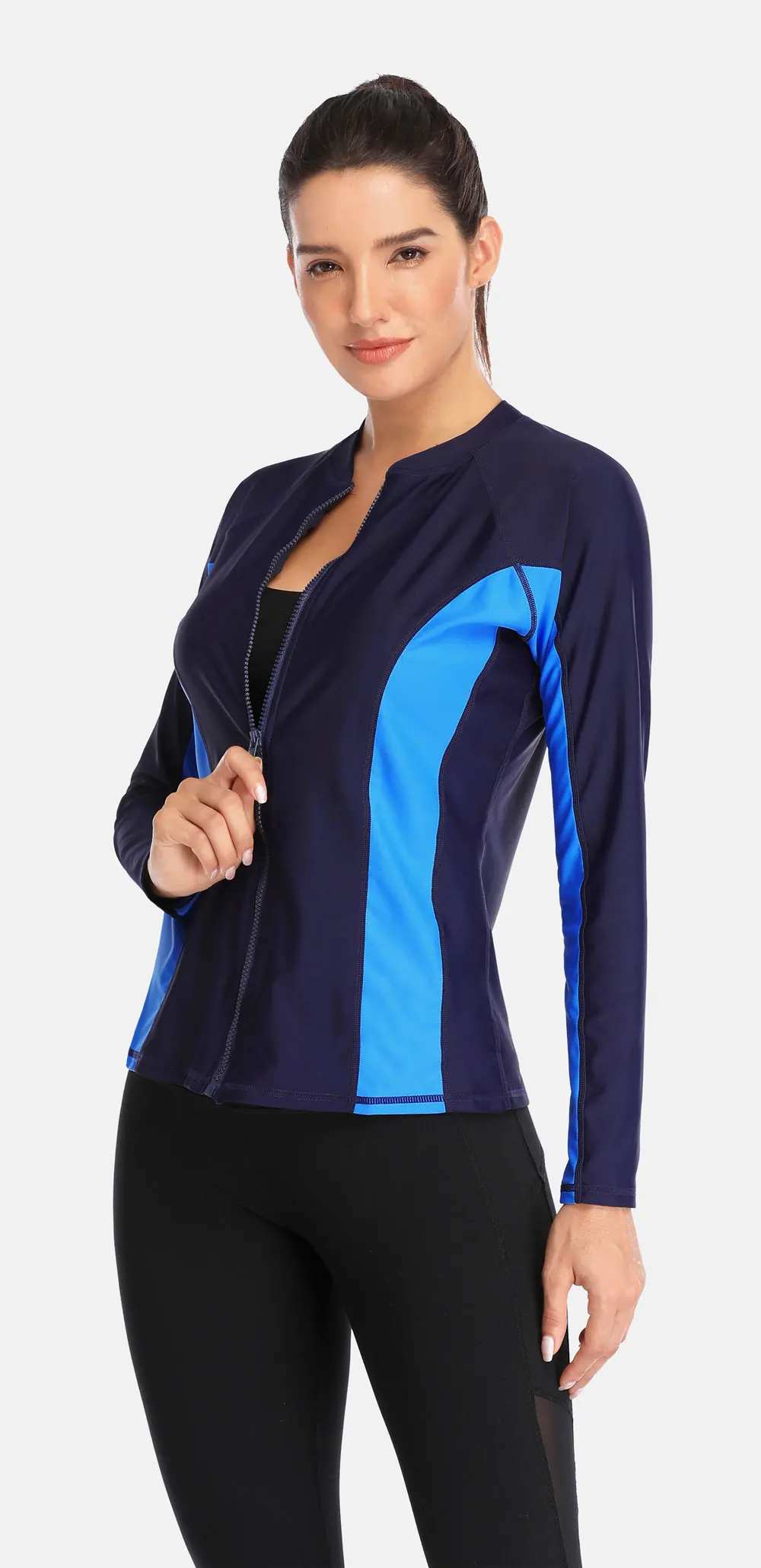 Charmleaks Женский Рашгард с длинным рукавом на молнии купальник для серфинга Топ Рашгард на молнии UPF50 + рубашка для бега велосипедная рубашка купальник