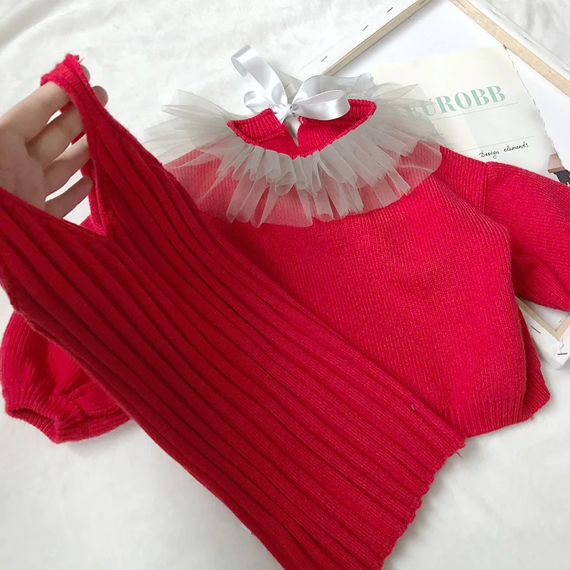 Элегантные комплекты одежды для девочек свитер с кружевным воротником для маленьких девочек + вязаное платье комплект из 2 предметов, осенне-зимние теплые детские изысканные наряды Состояние на 100% абсолютно новый и высокого качества Материал: хлопок Размер: подходит для детей От 1 до 6 лет