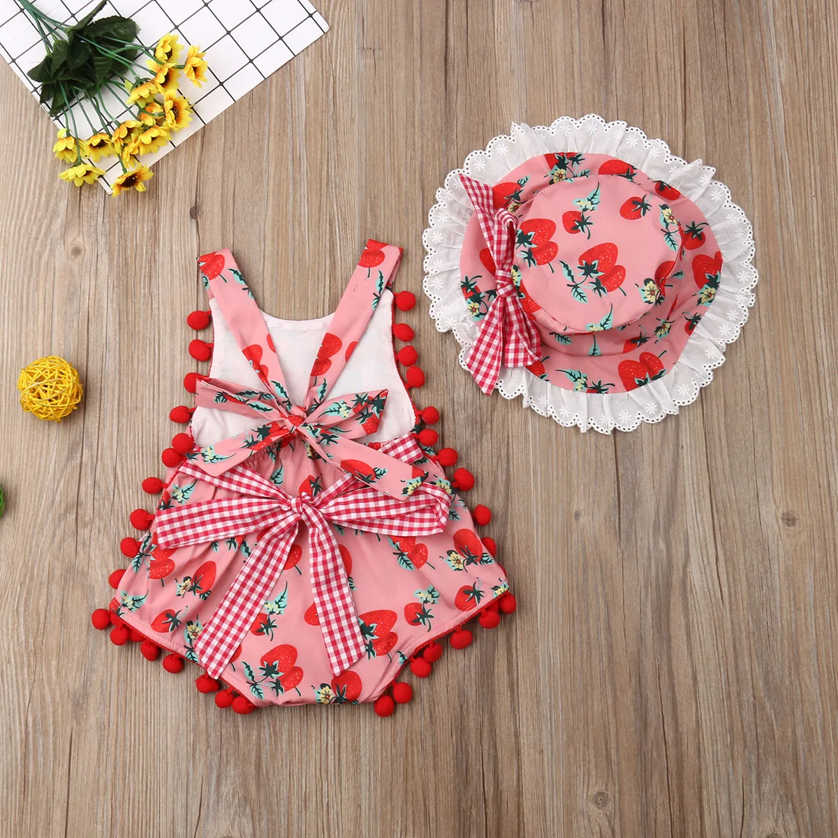 Милые детские шляпы от солнца для девочек клубничный комбинезон, 2 шт.Набор! Высокое качество и Новинка 100% Основной цвет: как показано на изображении Новое в моде Материал: Смешанный хлопокВнимание! Если ваш ребенок пухлый, мы рекомендуем выбирать больший размер, спасибо. Просим перепроверять размеры детей, рост и полноту по размерной таблице перед покупкой/подачей заявки. Спасибо. Посылка входит:1 комбинезон + 1 шапочка