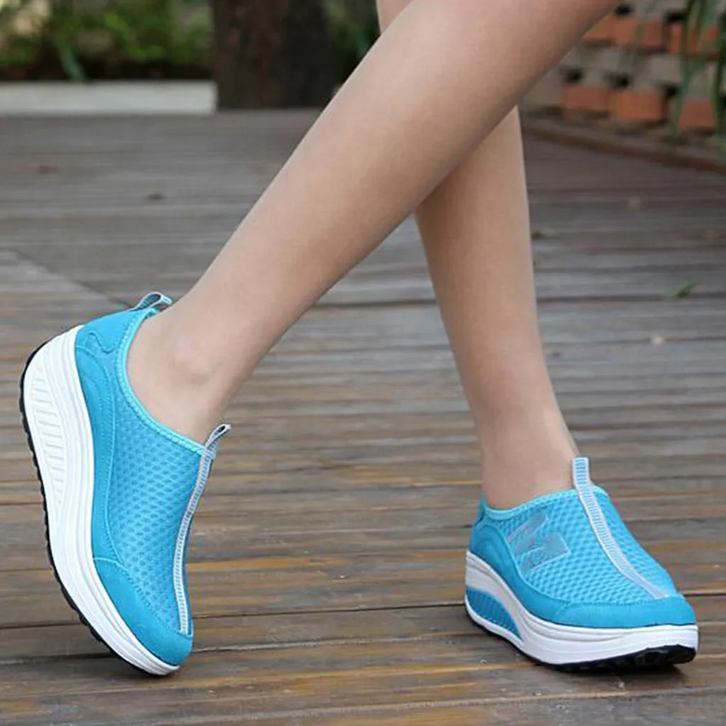 Женские модные повседневные сетчатые дышащие кроссовки на танкетке; Спортивные кроссовки для бега