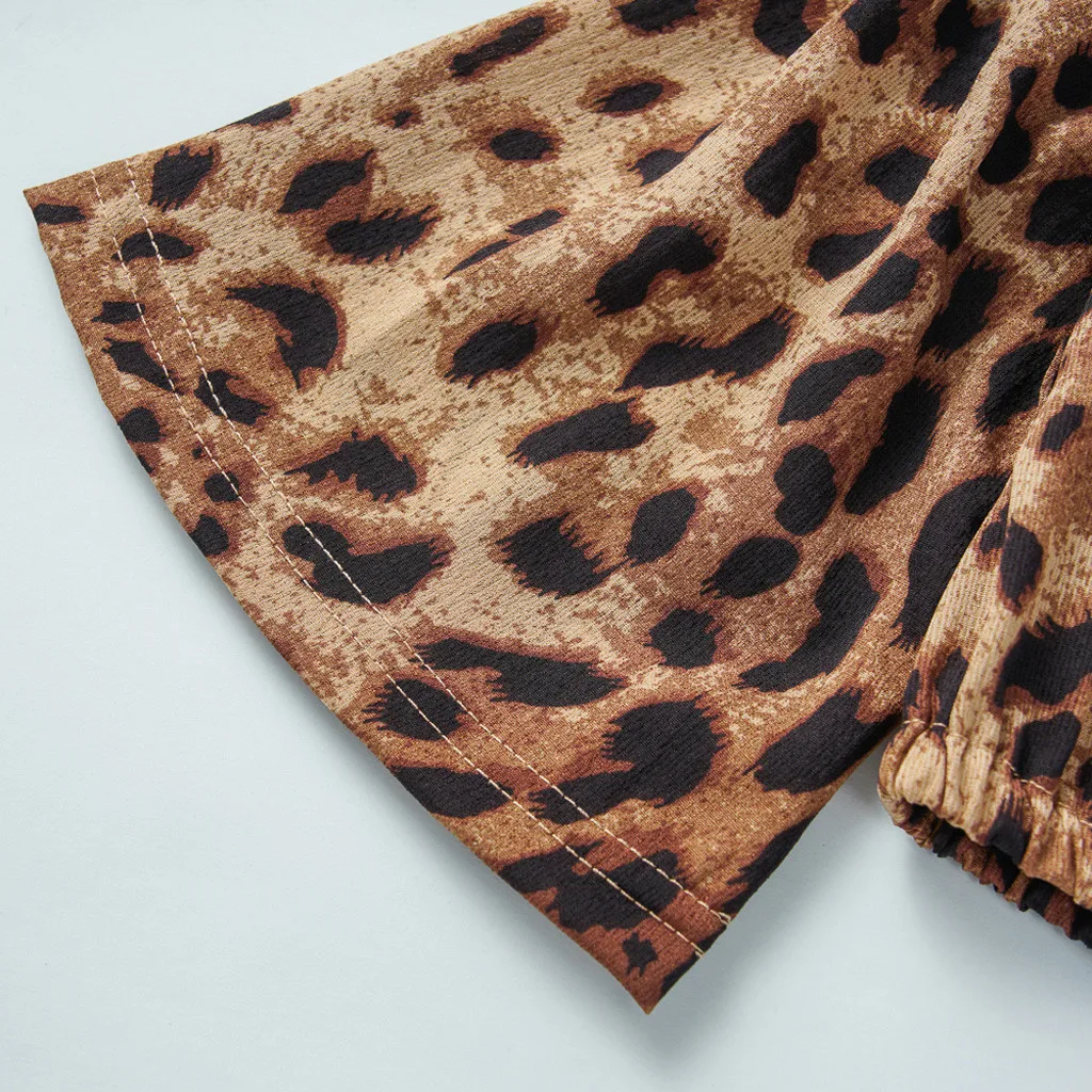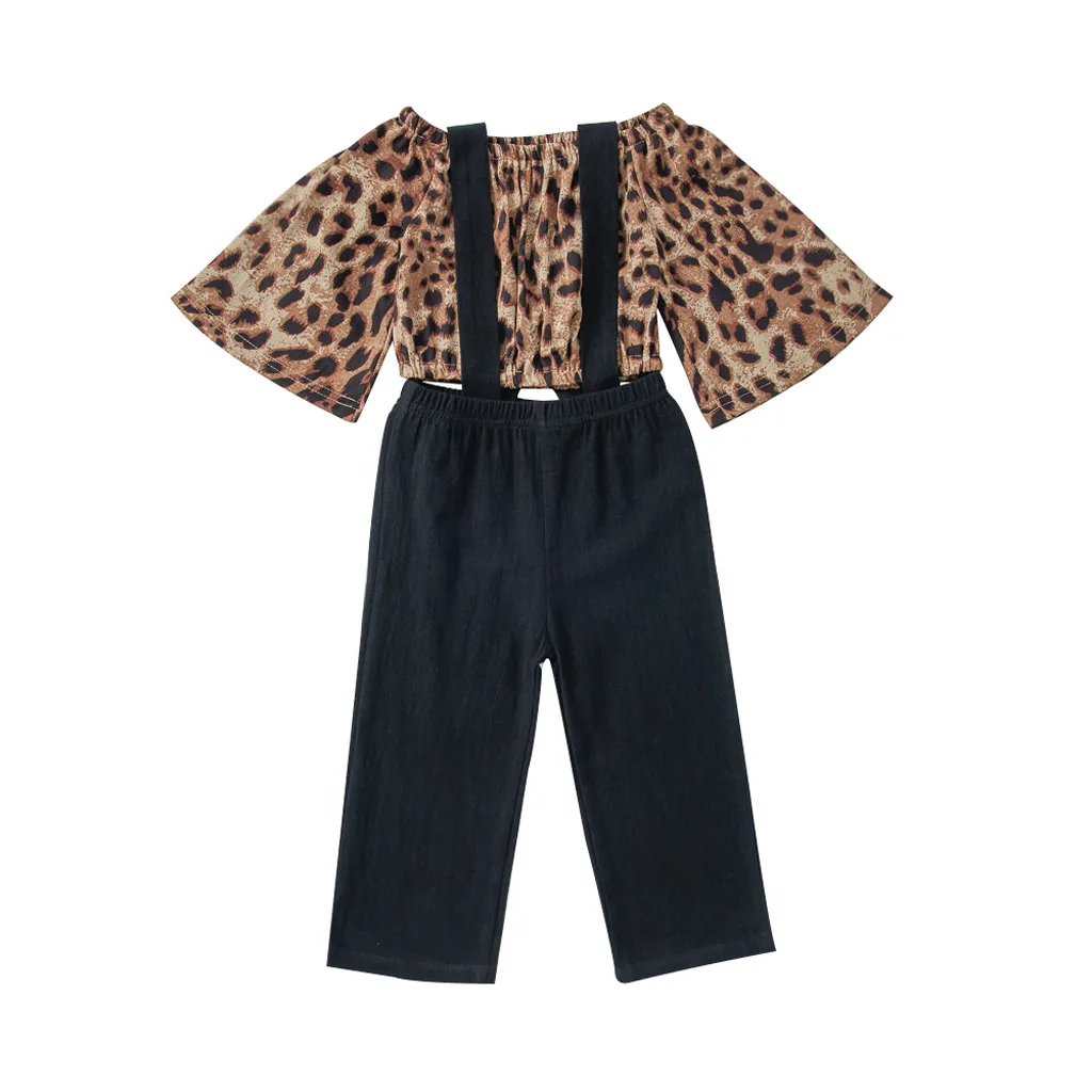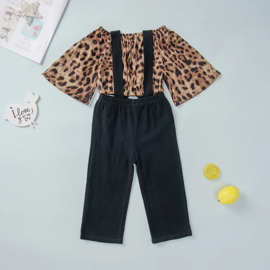 Одежда для маленьких девочек; Леопардовая футболка + штаны на подтяжках; Повязка на голову с цветочным рисунком; Комплект из 3 предметов; Детская осенняя одежда для маленьких девочек
