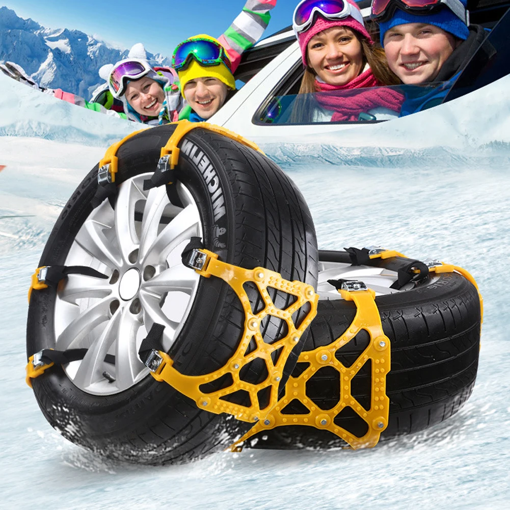 -Простота установки и демонтажа: легко установить автомобильные цепи для снега с регулируемыми ремнями, поэтому нет необходимости перемещать транспортные средства или снимать шины.