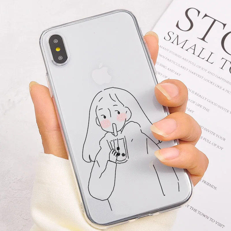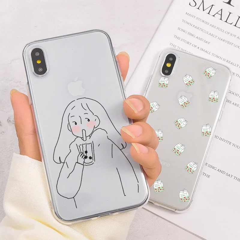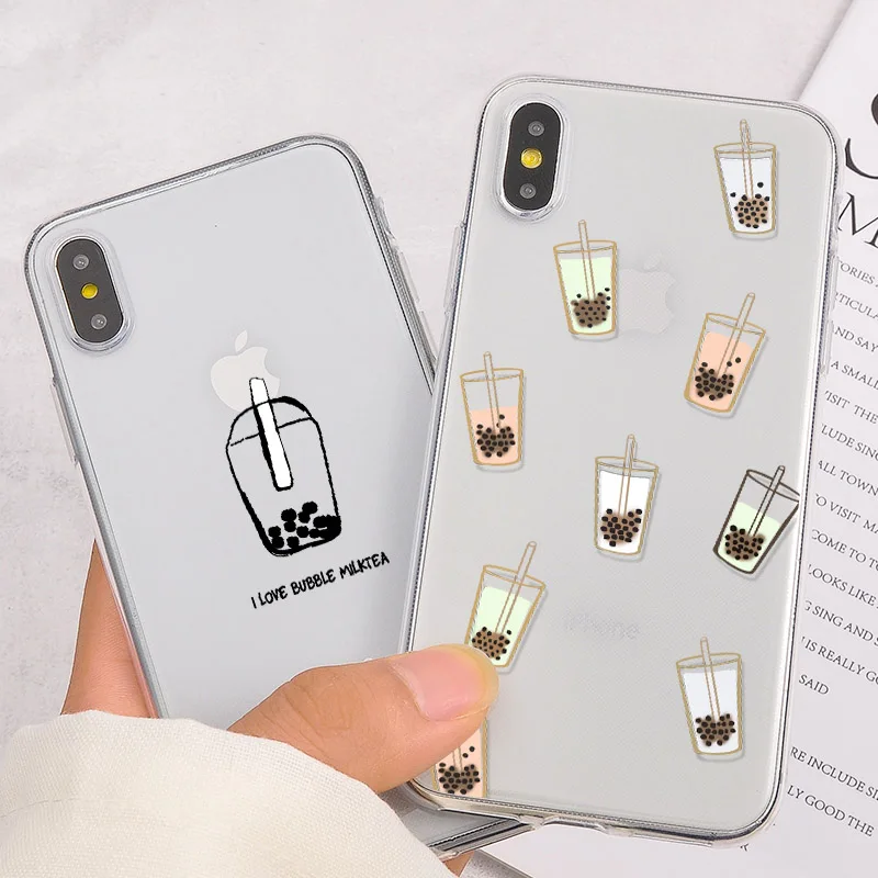 Прозрачный чехол для телефона с жемчугом и молочным чаем для iPhone XR XS Max XS X 7 8 6S Plus, прозрачный мягкий защитный чехол для iPhone 7 6 Plus