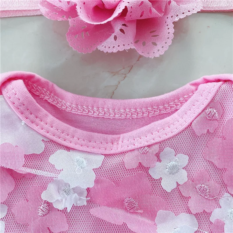 Комбинезон с короткими рукавами для маленьких девочек спортивный комбинезон с синей розой + повязка на голову + леггинсы комплект из 3 предметов для новорожденных на день рождения Косплей Подарки