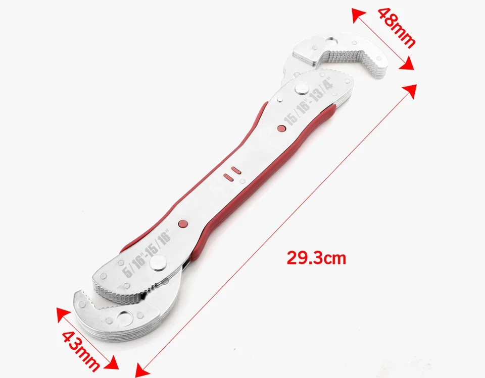 Технология саморегулирования гаек и болтов всех размеров и форм. Общая термообработка с хромированной поверхностью, закаленная и прочная. Может использоваться со всеми системами измерения. Эффективная, практичная, легкая система с одним движением руки. Это решение ваших проблем с кранами, клапанами, трубами и трубопроводами, радиаторами котлов, колесами и т. д.