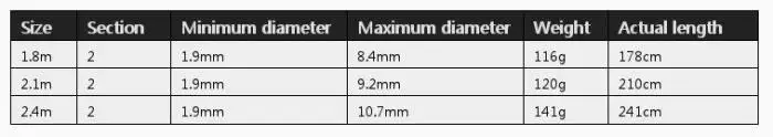 2,1 м: 2 1,9 мм 9,2 мм 120 г 210 см
