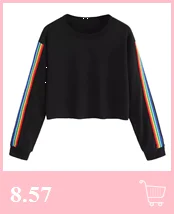 Черная Радужная полосатая Лоскутная Толстовка с круглым вырезом и длинным рукавом, повседневная Короткая Толстовка, модный сексуальный женский пуловер, Топы Harajuku # Y3