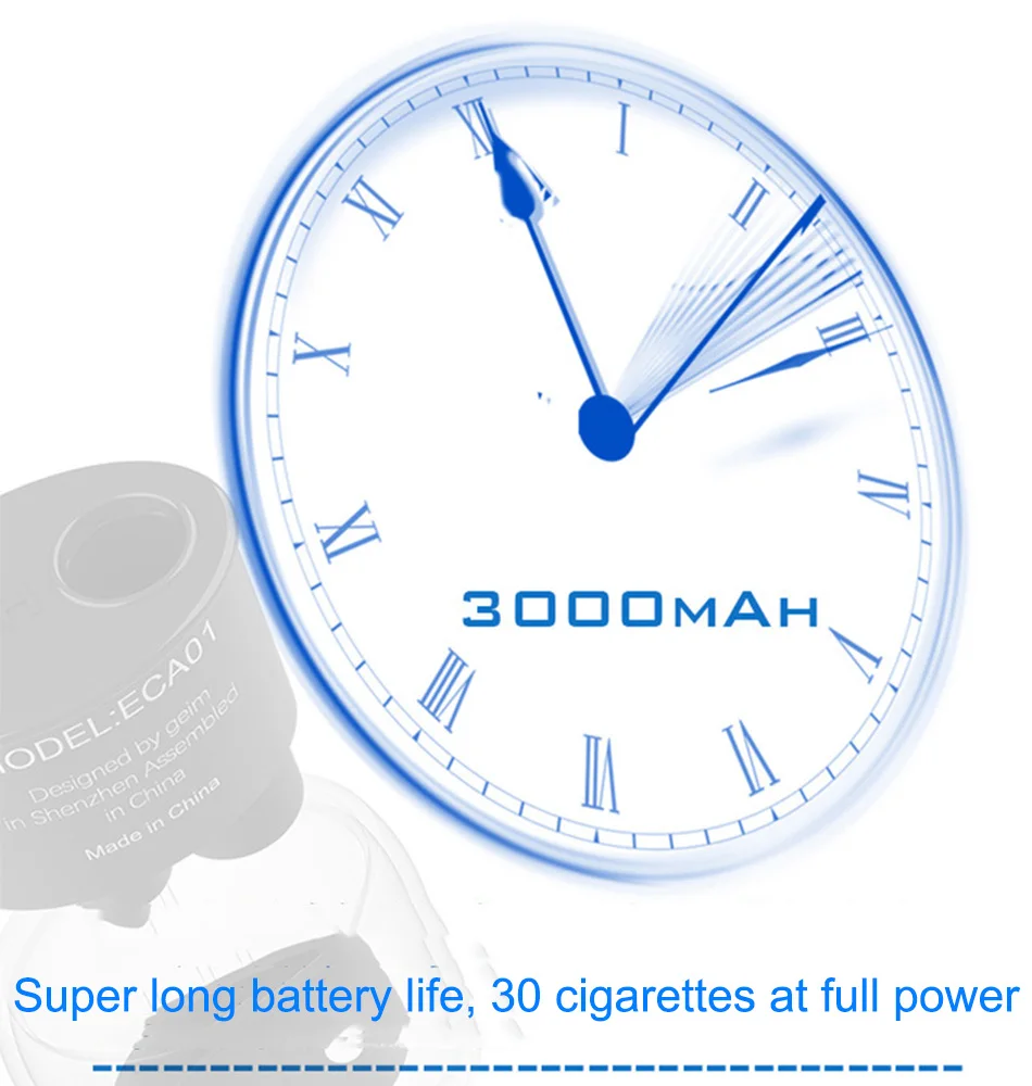 Размер: 160*90*70 мм Цвет: черный, белый Вес: 90 г Материал отделки: Экологически чистая Высококачественная резиновая краска Способ зарядки: USB зарядка Выходное напряжение: 5 В/1 А Время разогрева: 20 секунд Одна полная зарядка: доступна для 30 сигарет (5 минут для одной сигареты) Время дыма: 5 минут для одной сигареты Время зарядки: 3,5 часов