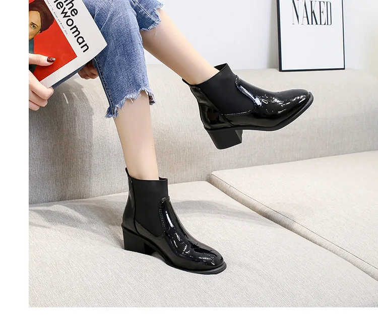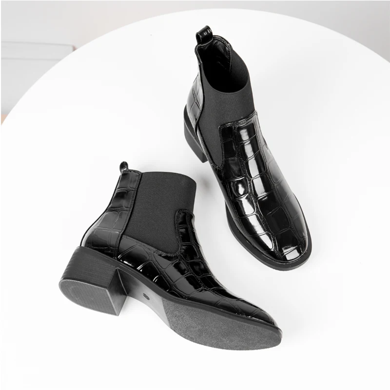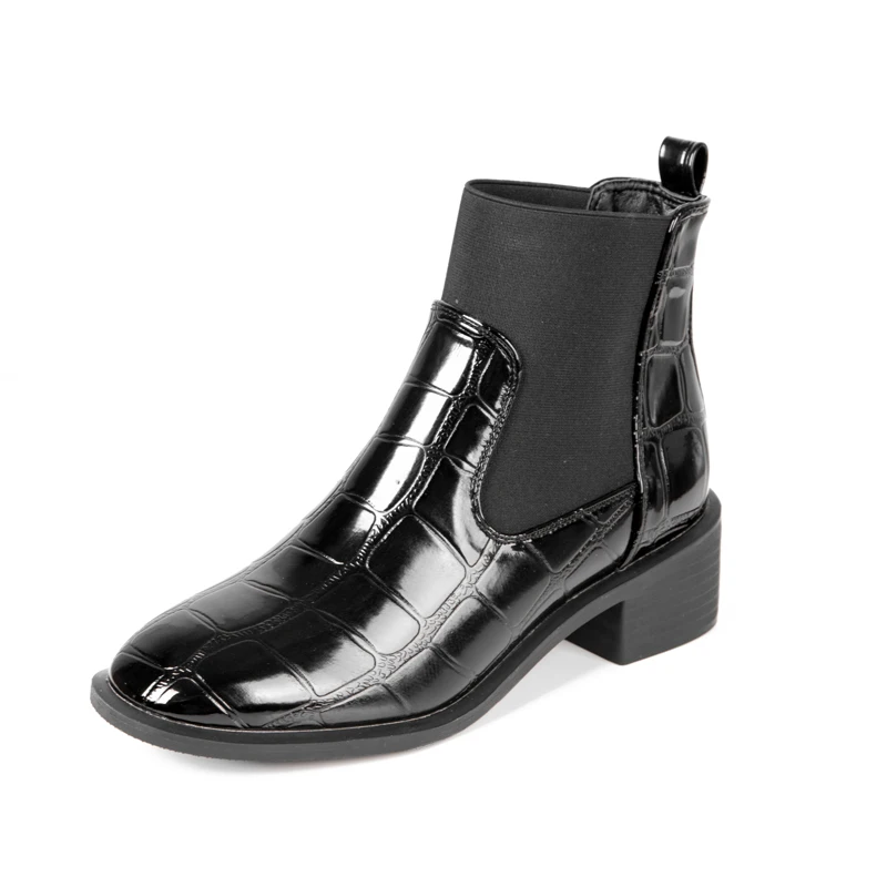 Осень-зима Женские ботильоны зимняя обувь из крокодиловой кожи кожаные сапоги Для женщин ботинки «Челси» на низком каблуке ботинки на шнуровке женские ботинки