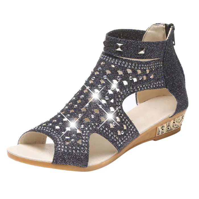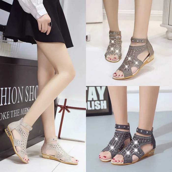 Тип обуви: Женская обувь в богемном стиле; Открытые сандалии с открытым носком и стразами; Повседневная обувь на плоской подошве