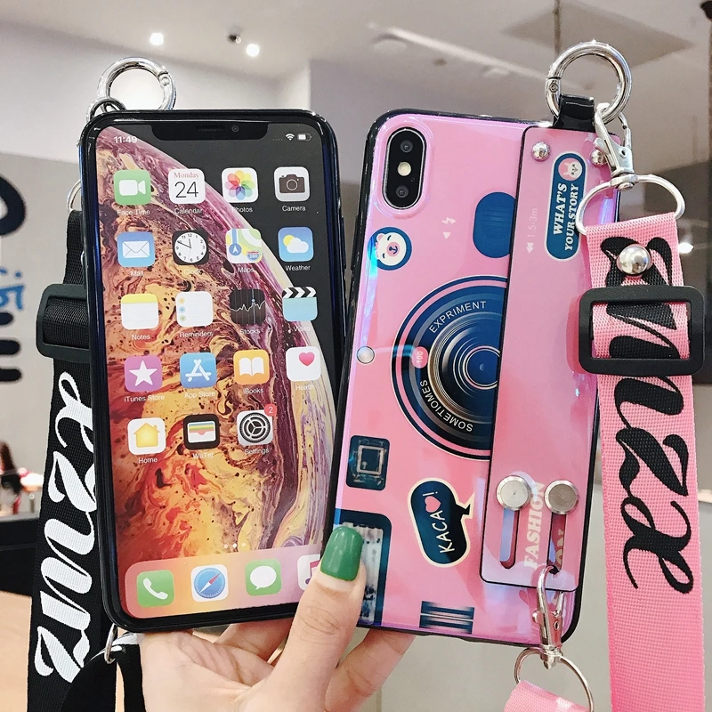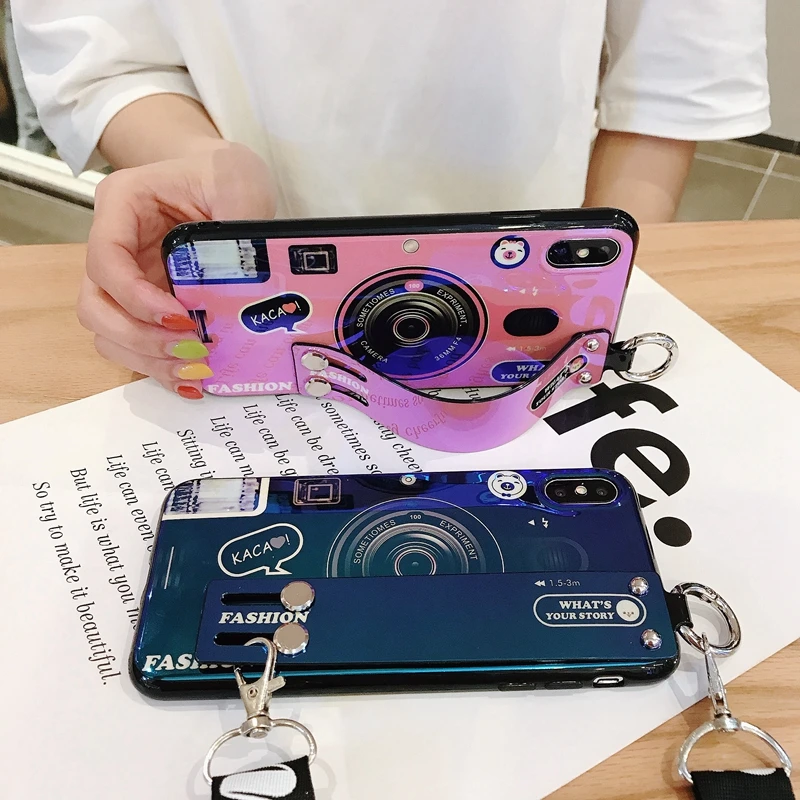 Casyva Wristband camera Phone Case for Samsung A20E A6S A8S A6 A8 PLUS A7 A9 2018 J6 J7 J8 J5 Fashion lanyard soft Back Cover