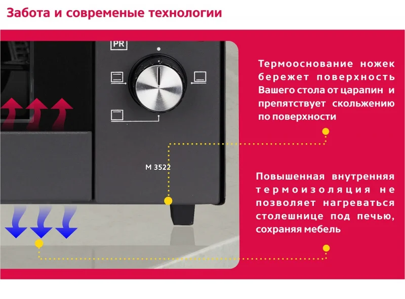 Электрическая Мини печь — Simfer M3522 - это духовка компактного размера, которая станет отличной заменой электрической или газовой плите на кухне небольшого размера или на даче и прекрасно подойдет для приготовления овощных, рыбных, мясных блюд или ароматной выпечки. Благодаря разнообразным режимам вы сможете воплотить свои кулинарные фантазии. Встроенный термостат позволит установить необходимую для приготовления блюда температуру. В комплект входят противень и съёмная металлическая решётка, предназначенные запекания мяса или овощей. Электрическая Мини печь Simfer - экспериментируйте в приготовлении разнообразных блюд и радуйте себя и своих близких!