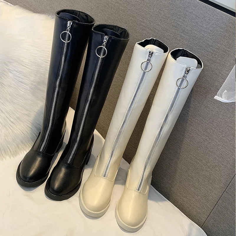 Женские кожаные ботильоны на молнии зимние ботинки высоком каблуке с квадратным