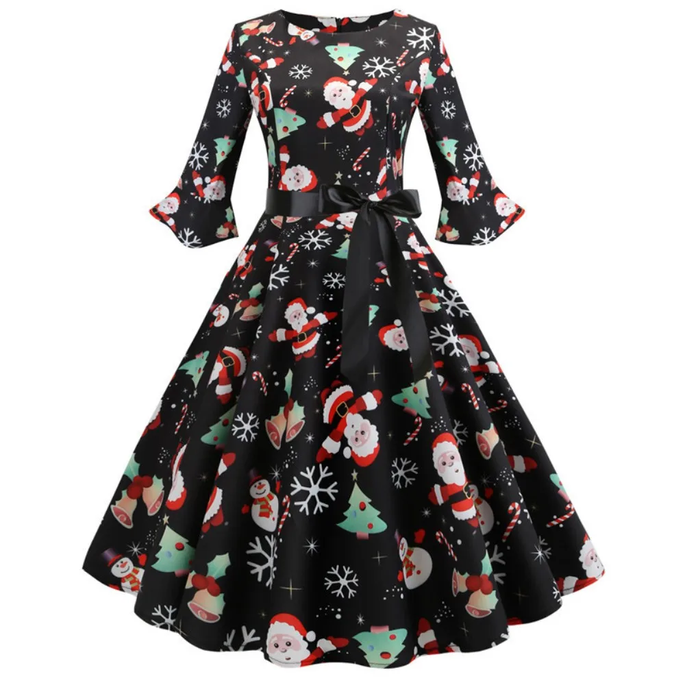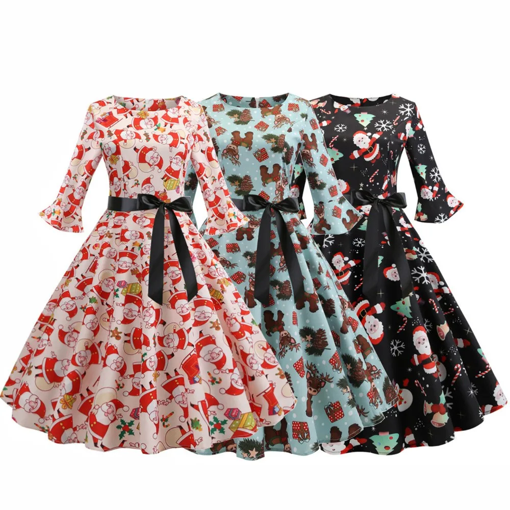Wipalo винтажное женское платье на Рождество элегантное ТРАПЕЦИЕВИДНОЕ вечернее платье vestidos Санта Клаус принт дамское повседневное зимнее миди платье