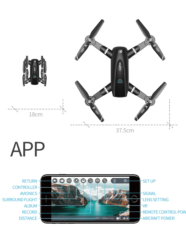 3.GPS вспомогательный полет: обеспечивает точные детали позиционирования дрона. Встроенная функция возврата воздуха (RTH), полет безопасен, когда батарея Низкая или сигнал недостаточен, беспилотный человек автоматически вернется в воздух и полетит из диапазона, не беспокоясь о потере дрона.