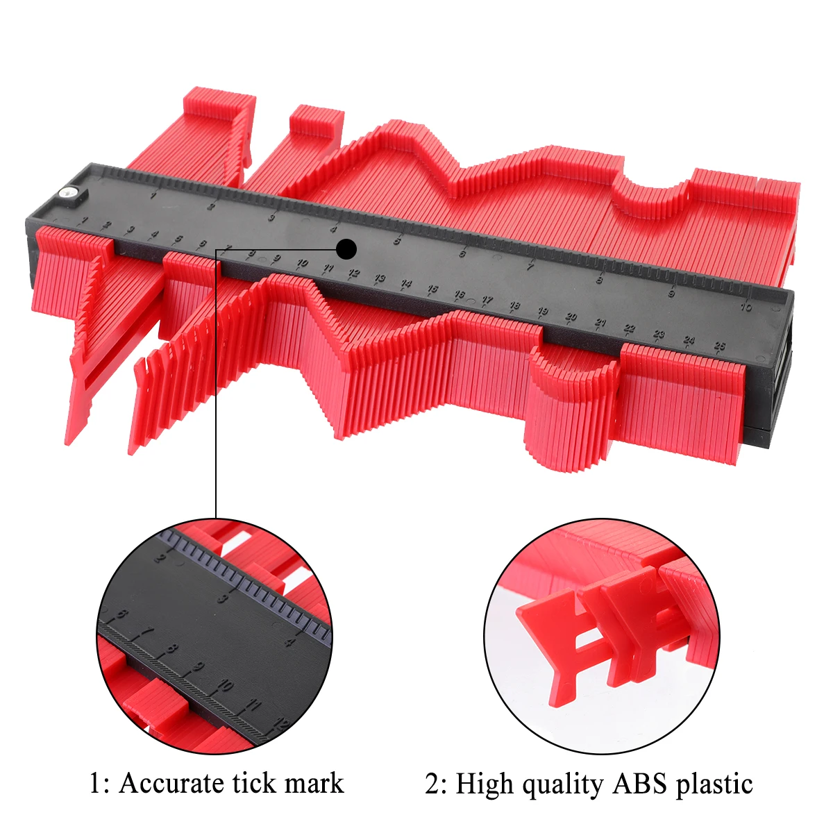 Просто нажмите контурный датчик на форму. Скопируйте профиль и вырежьте его в форму. Идеально подходит для установки плитки, ламината, ковра, проверки размеров, литья и т. Д.