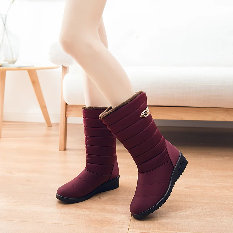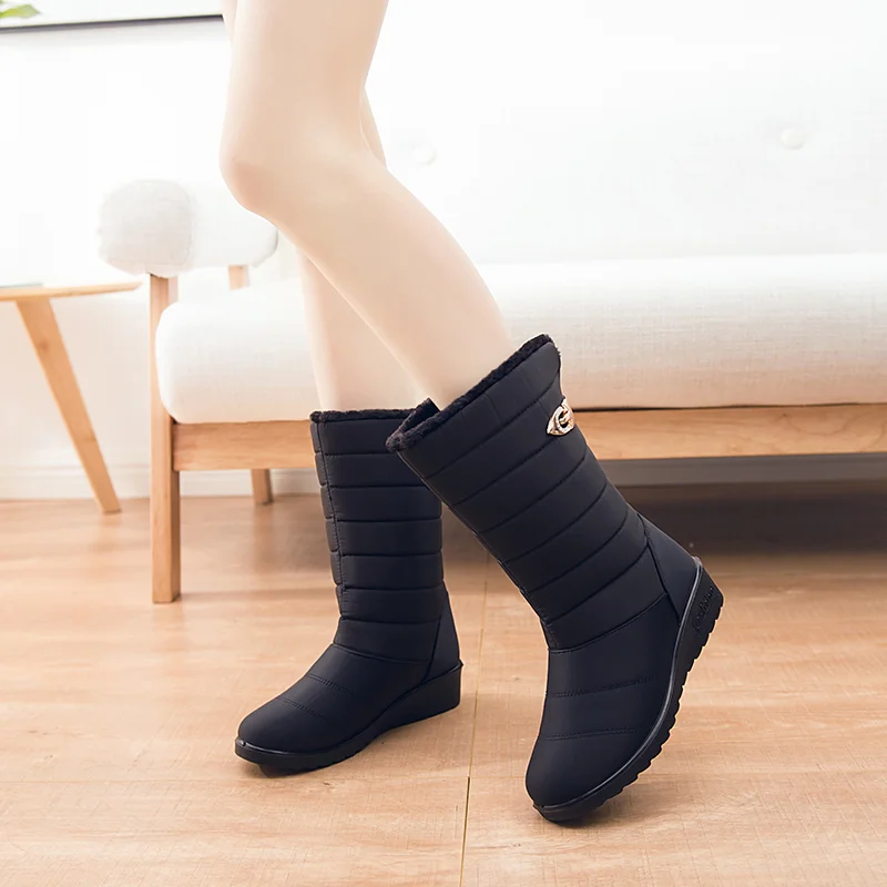 Новые женские сапоги; Нескользящие зимние сапоги; Женские сапоги до середины икры; Водонепроницаемые женские зимние сапоги для мам; Обувь на толстом меху из хлопка Важное примечание: