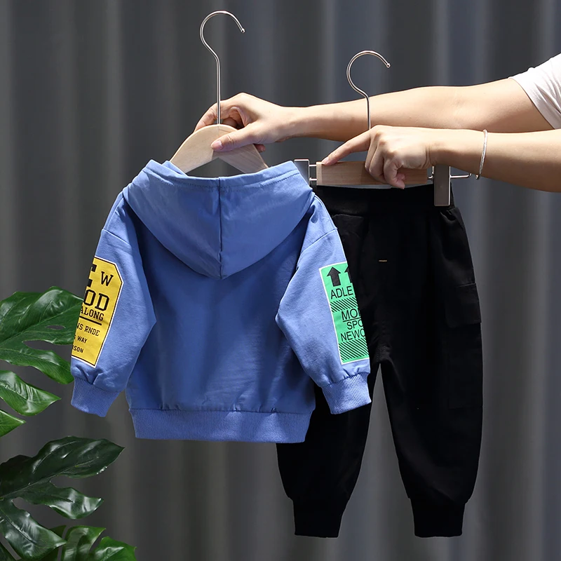 Осенняя детская одежда; Костюм для маленьких мальчиков и девочек; Толстовки с капюшоном и надписью; Брюки; 2 шт./компл.; Весенняя детская одежда из хлопка; Хлопковая Спортивная одежда для младенцев; Для От 0 до 5 лет