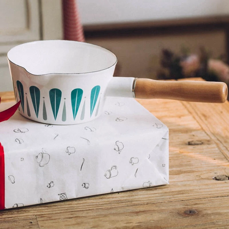 1Л эмалированная кастрюля для молока с рисунком листьев, Детская кастрюля для приготовления еды, сковорода, сковорода с деревянной ручкой, маленький суповый горшок, масляная фритюрница