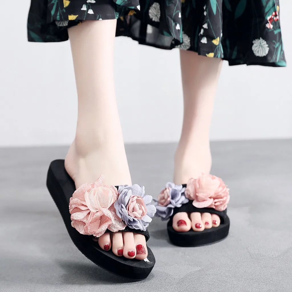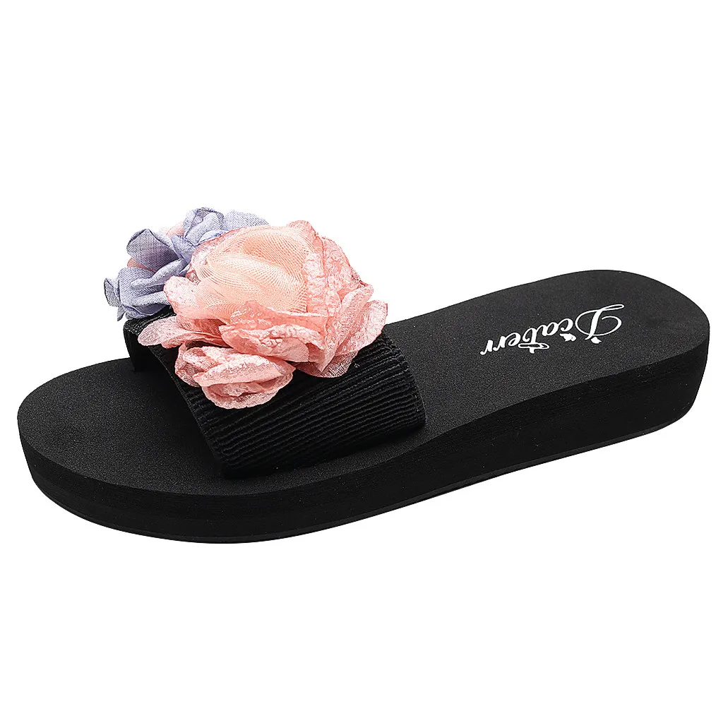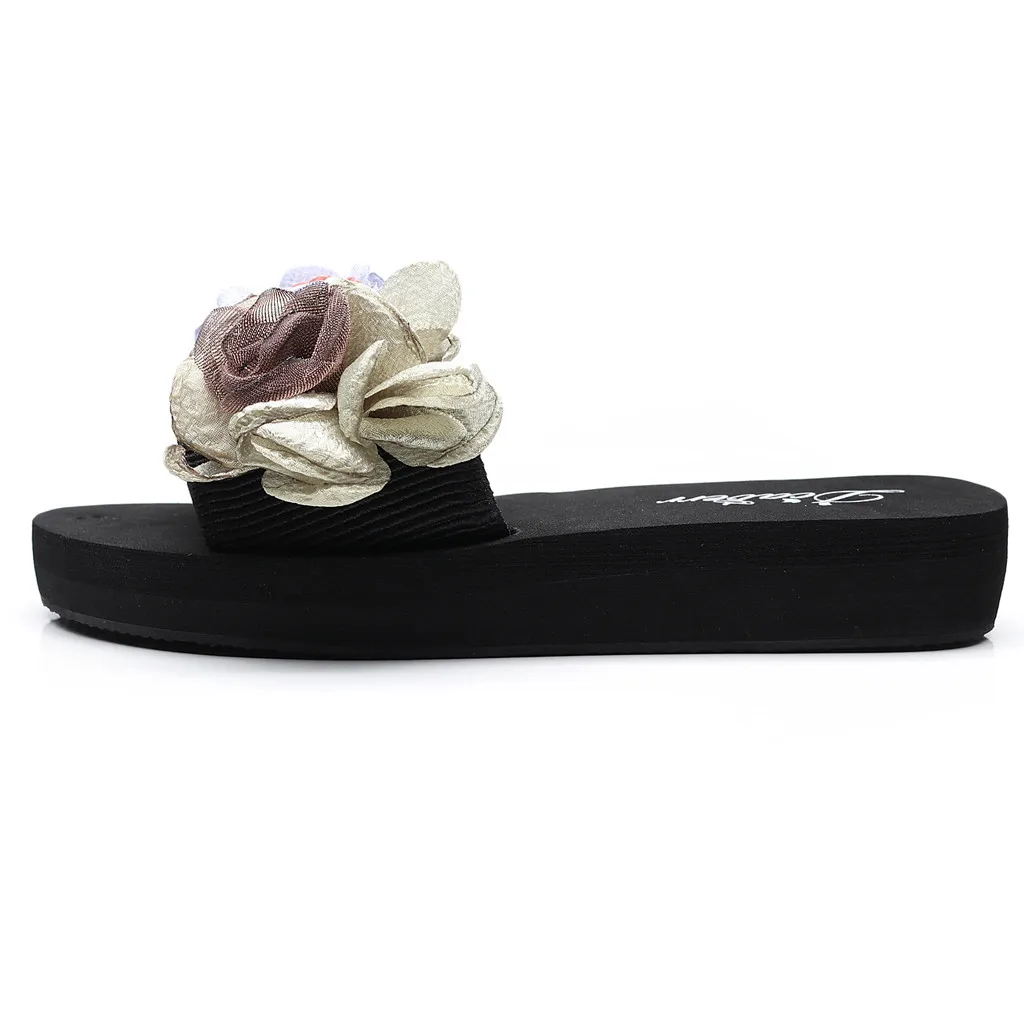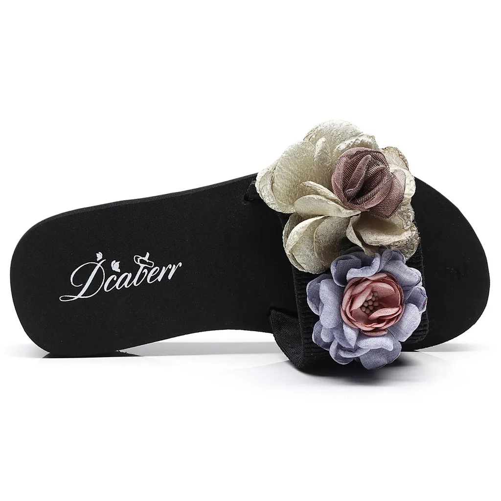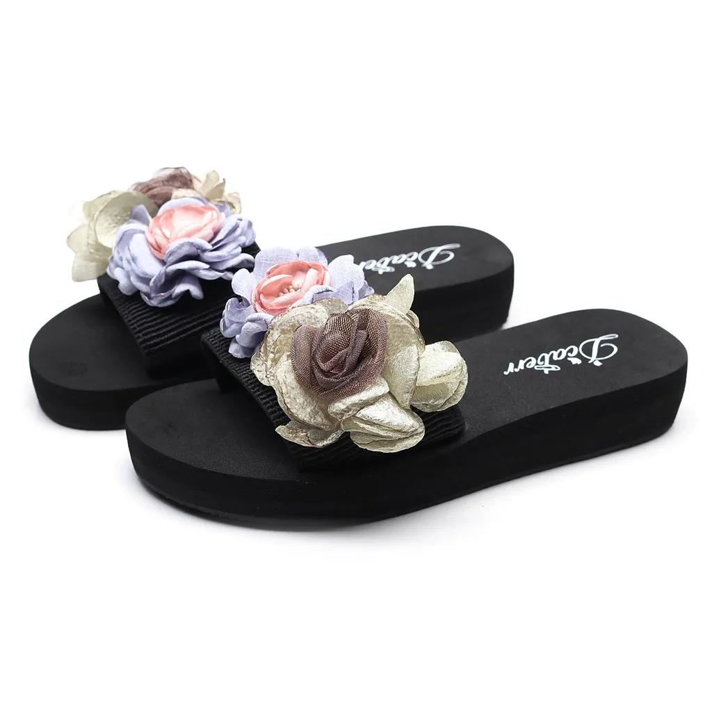 Женские босоножки на танкетке с цветочным рисунком в богемном стиле; шлепанцы; пляжная обувь