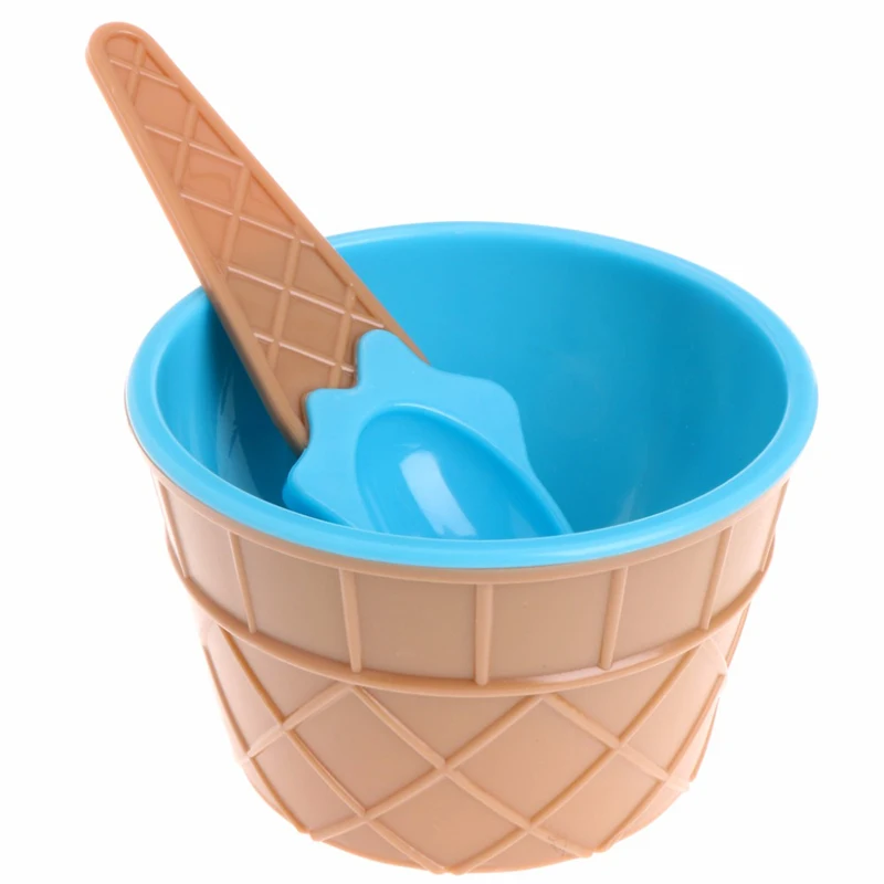 Дети, миска для мороженого, ложка, набор, безопасный прочный пластик, очаровательный карамельный цвет, десертная чаша youguartt, чашка, сделай сам, инструменты для мороженого, розовый, синий