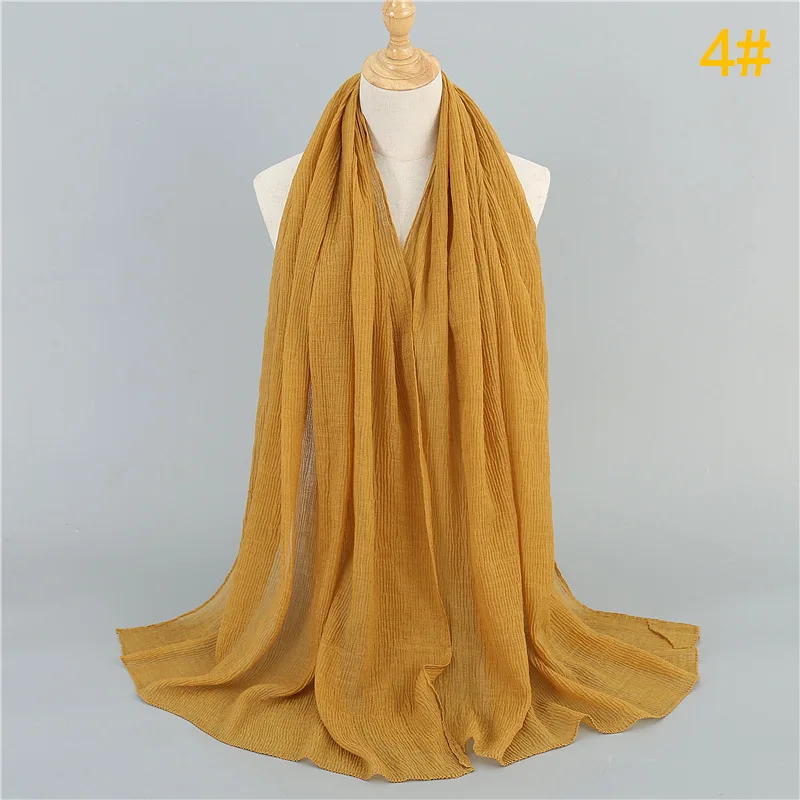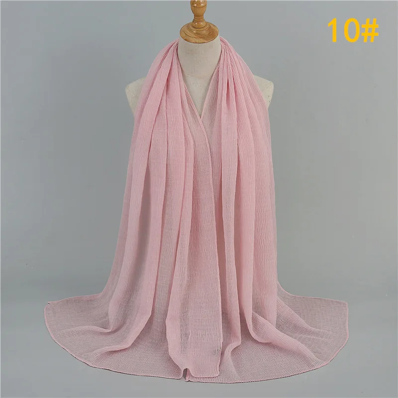Модные Плиссированные Длинные гофрированные хиджабы элегантная шаль простой длинный мусульманский хиджаб женские шарфы со складками мягкие шали W056