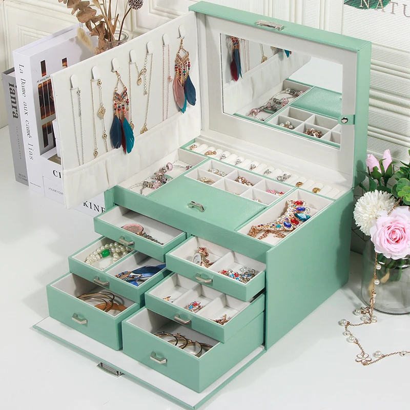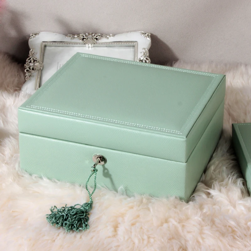 High-end Jewelry Box Genuine Leather Belt Lock Wooden European Jewelry Box Jewelry Storage Box Princess Korean Girls Gift
