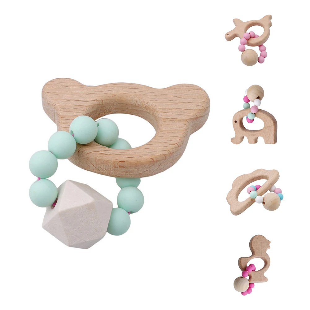 Деревянный Детский браслет медведь облако луна Ювелирные изделия в форме животных прорезыватель погремушка игрушки