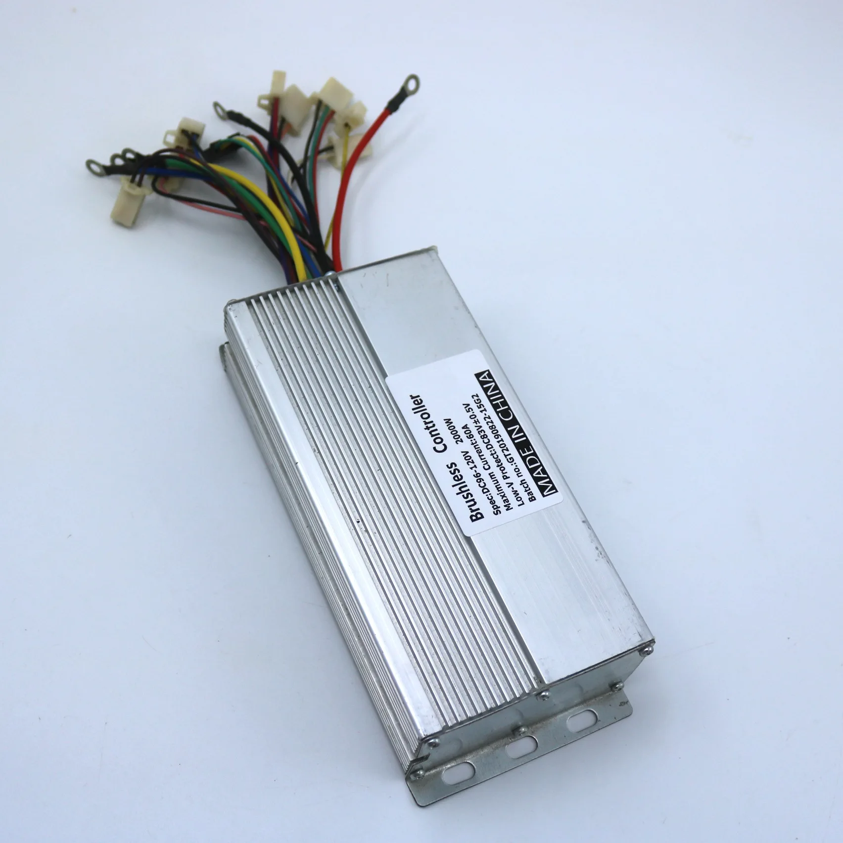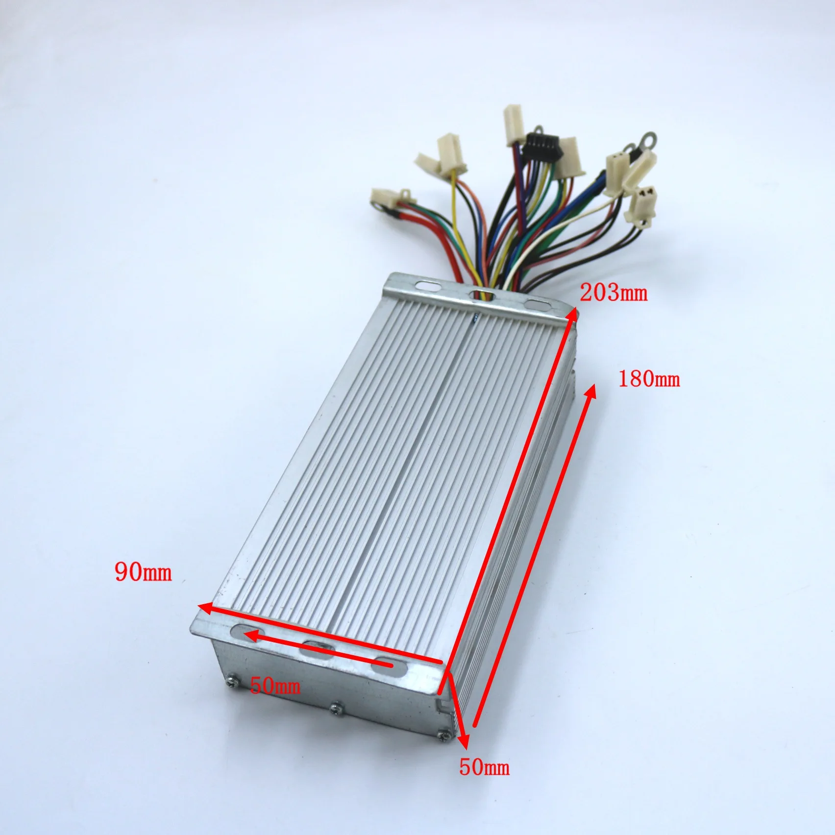 Параметры: Рабочее напряжение: 96 в Предельный ток: 60A Мощность: 2000 Вт Степень фазы: Тип двойного режима Уровень тормозов: тормоз высокого/низкого уровня Три функции скорости: Да, низкая скорость, нормальная скорость и превышение скорости МОП-транзистор: 15 МОП-транзисторов Костюм для двигателя: 2000 Вт Мощность Другие функции: опционально Размер контроллера: 203*90*50 мм
