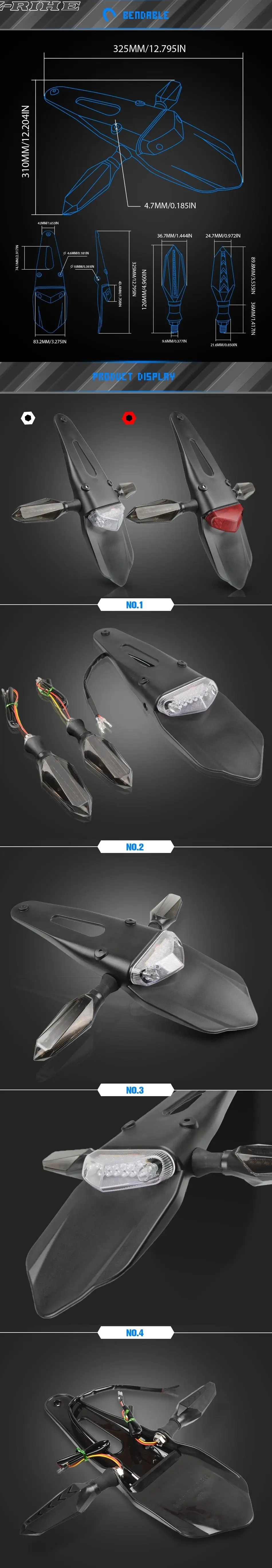 Универсальный мотоцикл светодиодный тормозной фонарь светильник и заднее крыло Задняя брызговик Мотокросс Байк пользовательские мотоцикла
