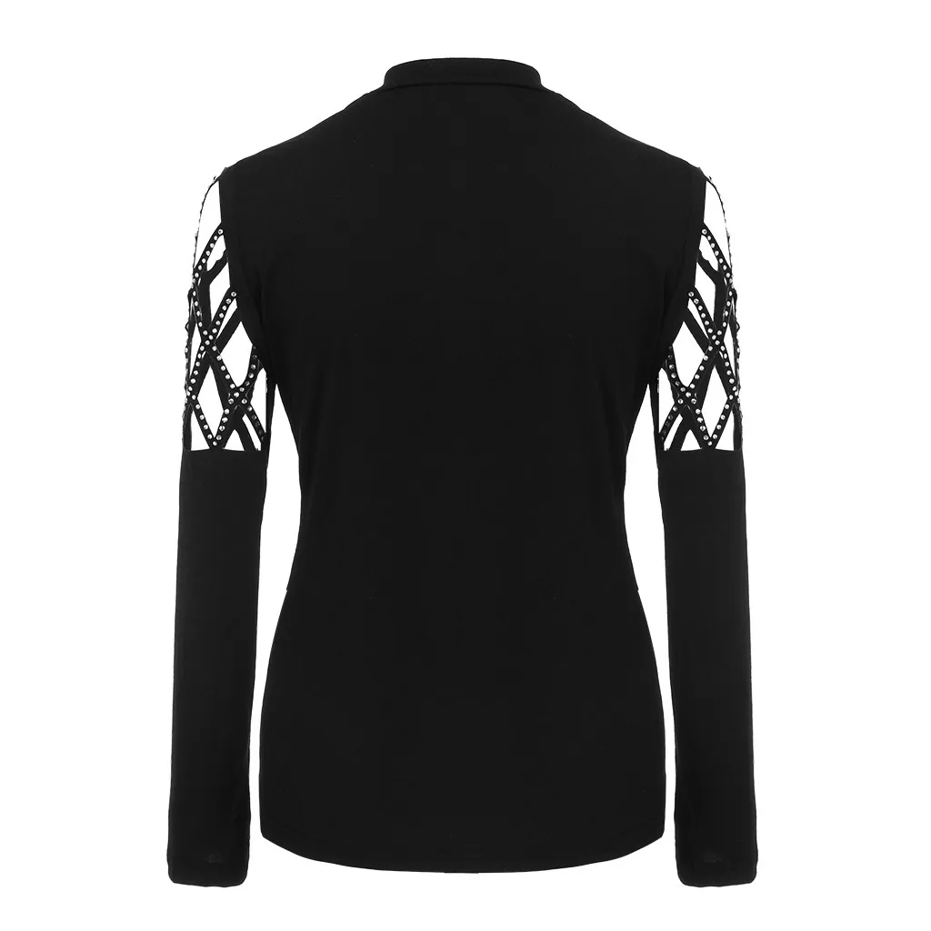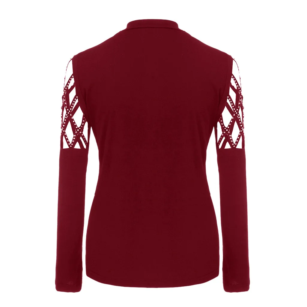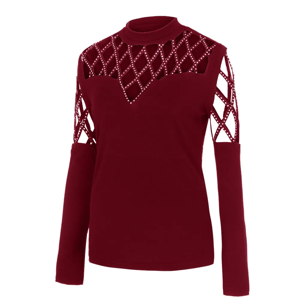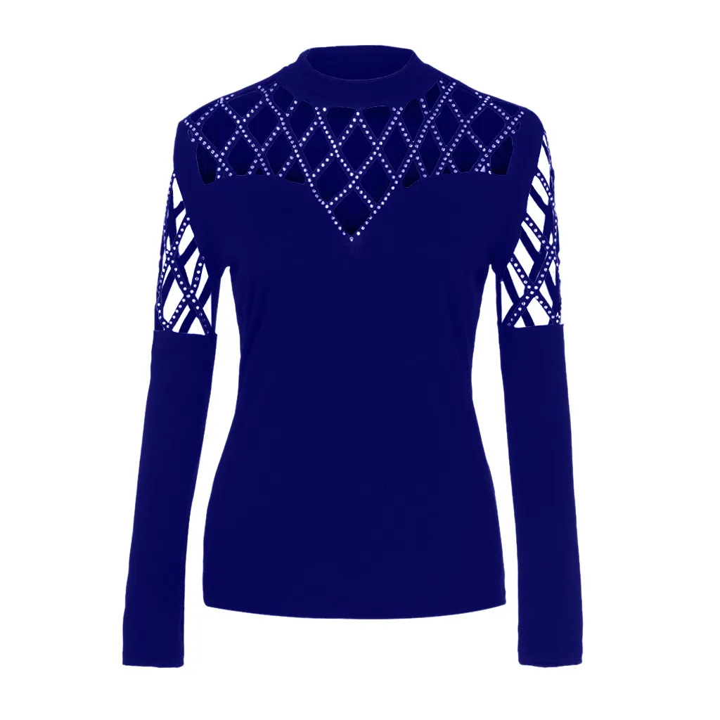 Особенности: стразы, повседневные топы, однотонный, длинный рукав, Повседневная блузка,Повседневная одежда, с вырезами, стильный и модный дизайн, летние и весенние повседневные топы.