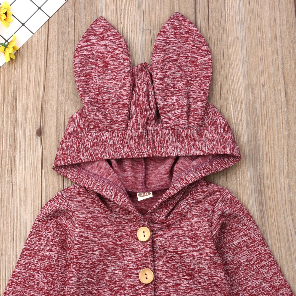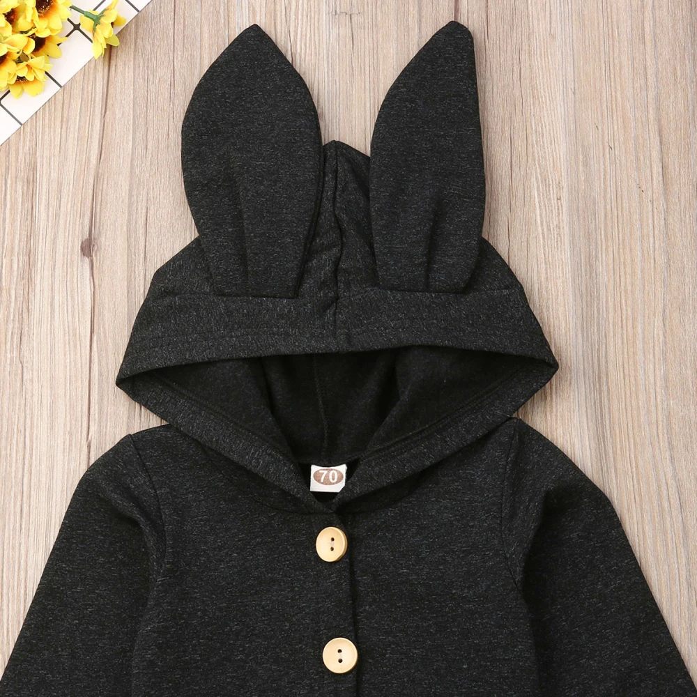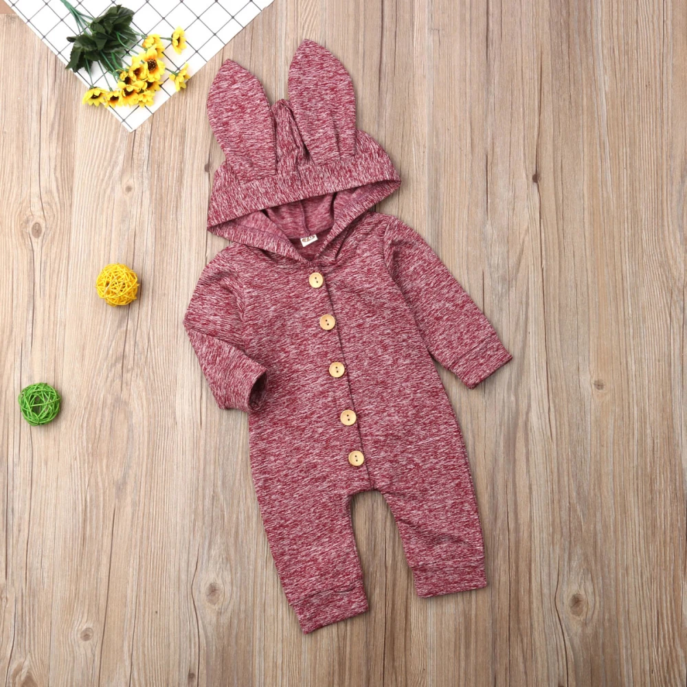 Весенне-осенняя теплая одежда для малышей; Комбинезон с капюшоном и объемными ушками для новорожденных девочек и мальчиков; Однотонные комбинезоны с длинными рукавами и рисунком кролика