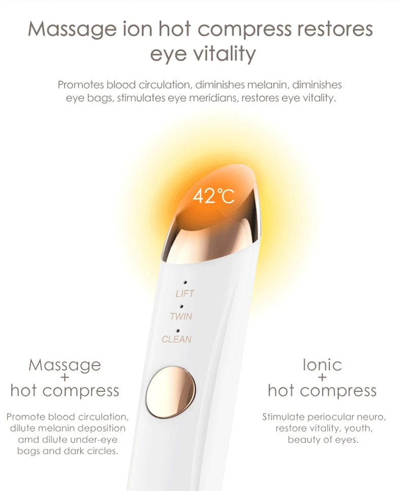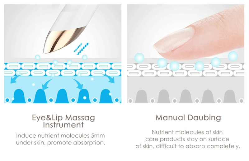 Уход за каждой дюймовой кожей глаз и губ. Эллиптическая Массажная головка для большого пальца подходит для эргономики, каждый раз защищает глаза и губы.