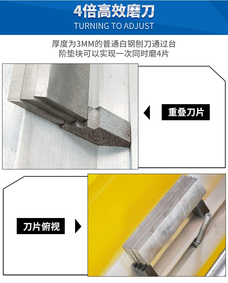 3) Отрегулируйте количество ножа, поверните рукоятку подъемник мотора в верхней части машины, отрегулируйте шлифовальный круг. Перемещайте колесо вверх и вниз, чтобы сделать колесоПередний край соприкасается с лезвием для обеспечения качества шлифования лезвия. Примечание: не более 0,2 мм на нож.