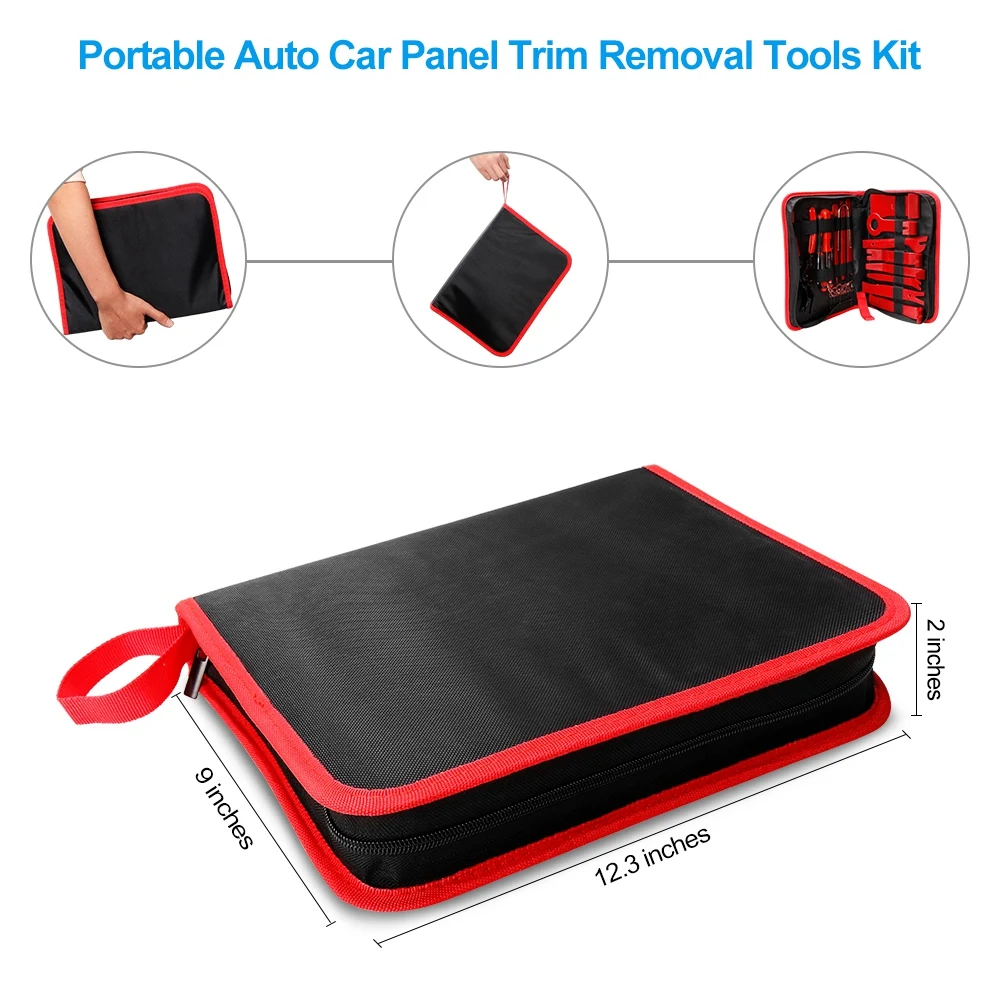 Многократное использование: 28 шт. набор инструментов для удаления автомобильной панели, идеально подходит для разборки или сборки аудио/радио автомобиля, дверной панели, молдинги, крепежные зажимы, фонари на крыше, область управления аудио CD, обшивка окон или ремонт автомобильного интерьера и реставрация мебели.