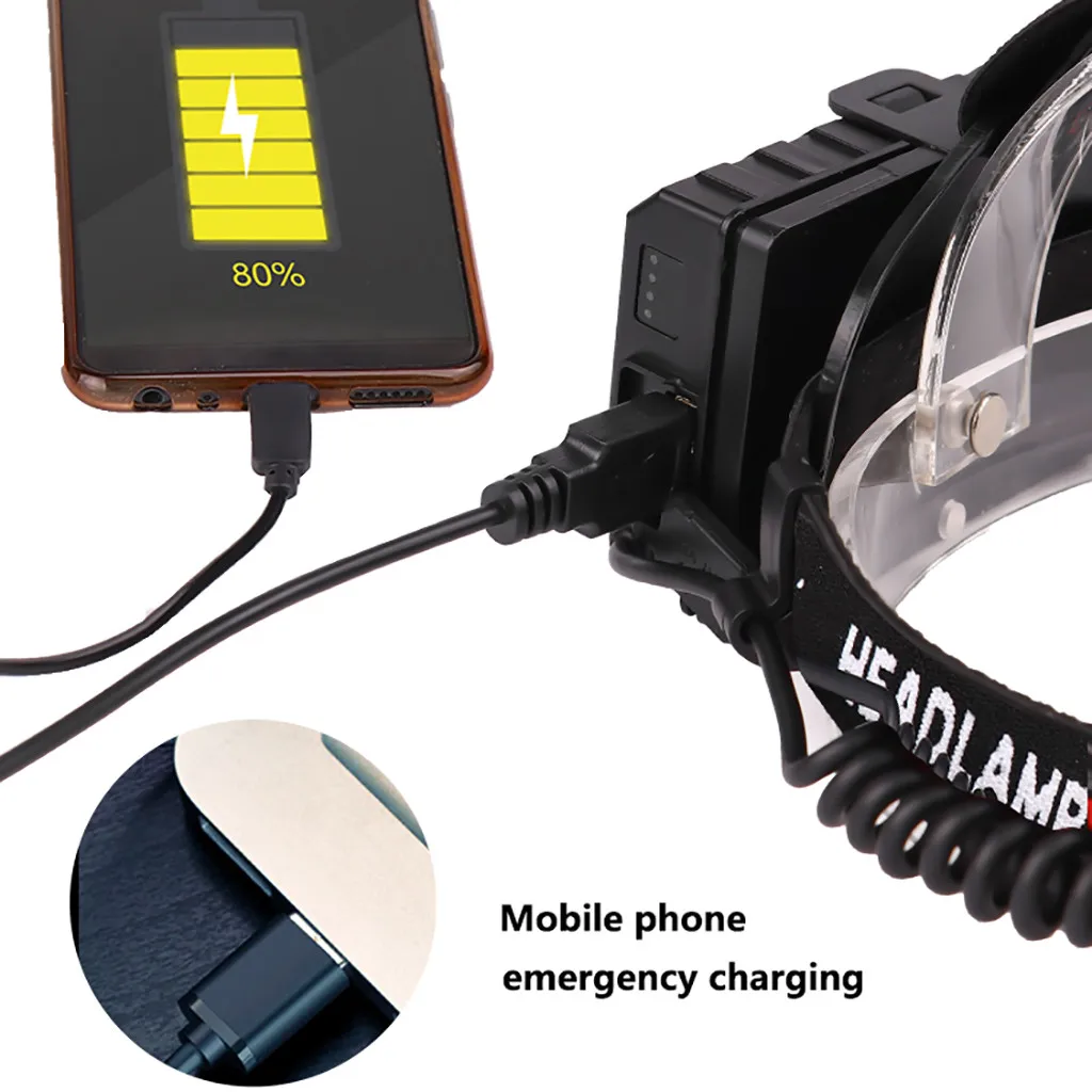 XHP50 светодиодный налобный фонарь 5 Режимы Фары фонарь Головной фонарь с зарядным дисплеем