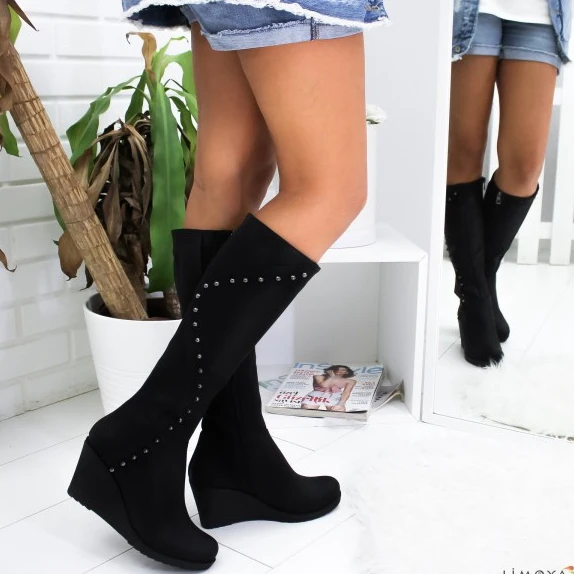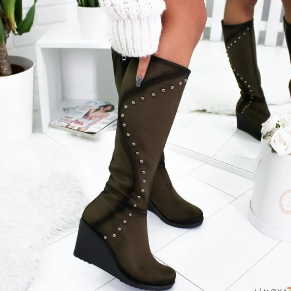 Meotina/Сапоги до колена из натуральной кожи на плоской платформе женская обувь