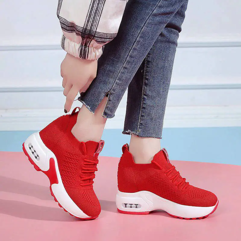 Кроссовки женские сетчатые на танкетке дышащие Нескользящие высоком каблуке