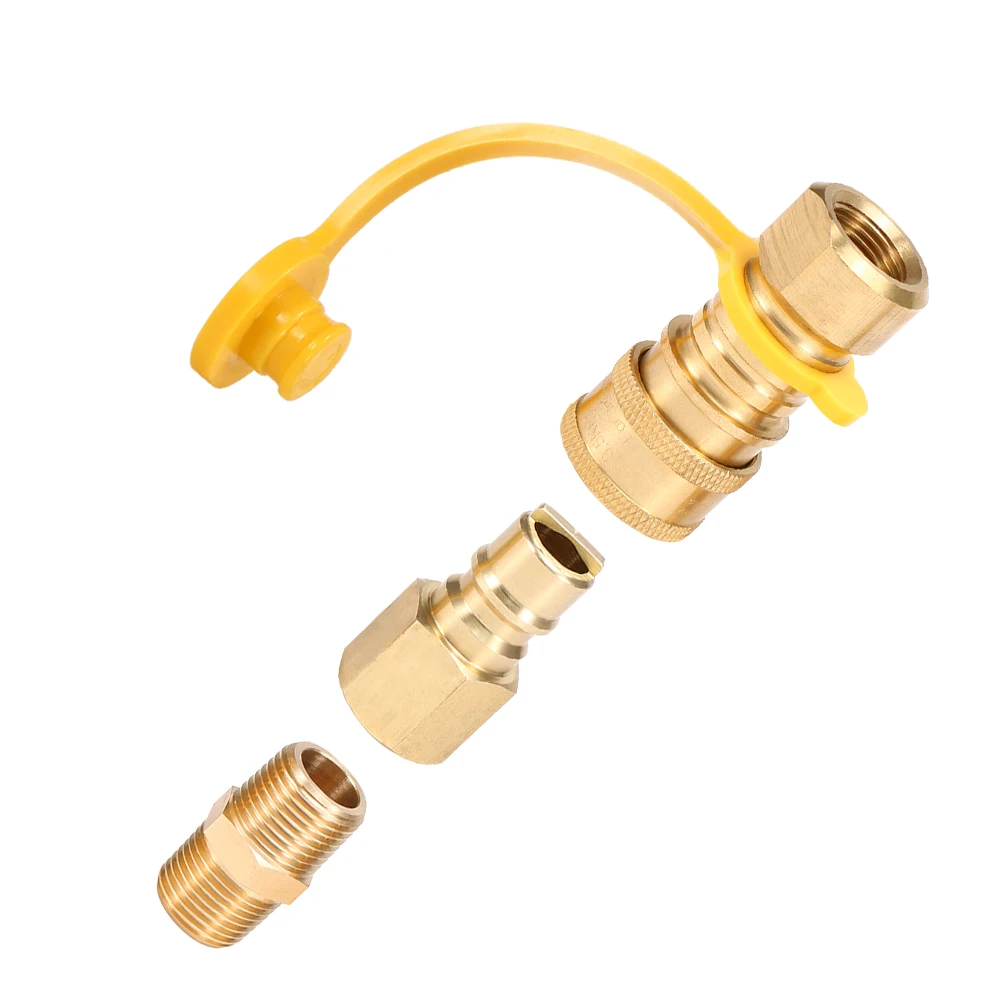Особенности: Запорный клапан: 1/4 "Female NPT x Female quick connect. Разъем полного потока: 1/4 ''штекер NPT x штекер быстрого подключения. Используется для пропановой системы низкого давления. Твердая латунь конструкция.