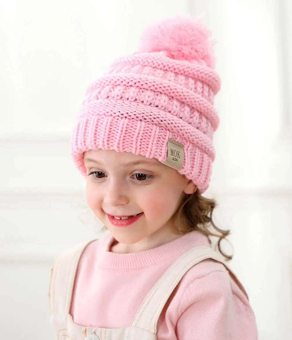 Warm cap for girl Winter warm soft beanie hat hairball cap Pompom hats kids knotted baby hat winter knitted hat baby boy H200S