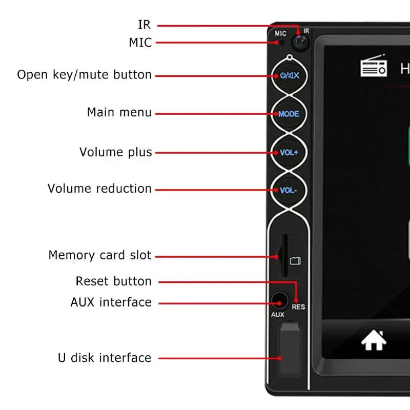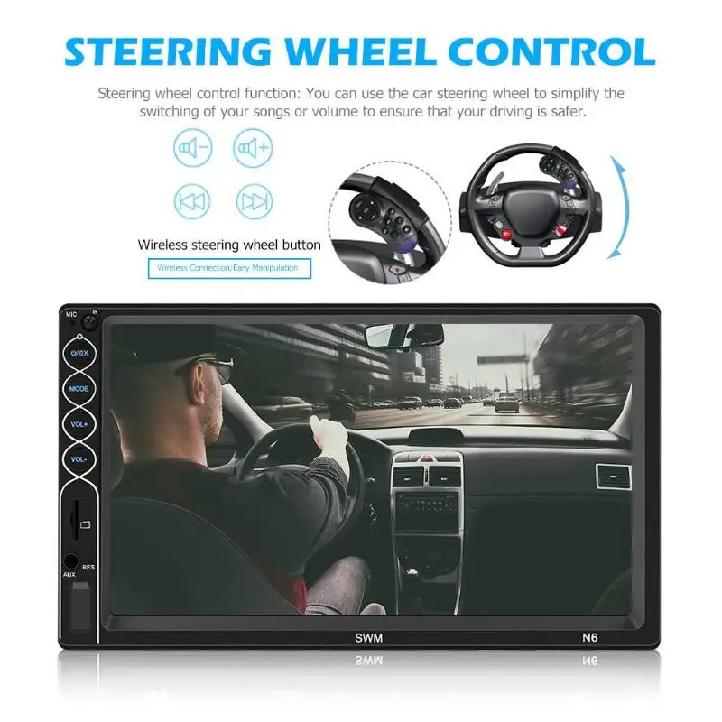 SWM мотор N6 двойной 2 DIN автомобильный стерео MP5 плеер 7 дюймов Сенсорный экран Bluetooth USB магнитола с AUX приемник в тире головное устройство Особенности: 1. Новая пластиковая/металлическая форма 2. Красочная подсветка кнопок (цвета можно управлять отдельно) 3. Поддержка зарядки для Android/iPhone/ноутбука и т. Д. 4. Поддержка замены логотипа автомобиля 5. Новый дизайн пользовательского интерфейса 6. Импортированный радиомодуль, не выключается при 120 км/ч 7. Первая в отрасли модель, которая поддерживает зеркальную ссылку для iPhone XR Технические характеристики: Тип: A (без пульта дистанционного управления) B (с пультом дистанционного управления) C (с пультом дистанционного управления + пульт дистанционного управления рулем) D (с пультом дистанционного управления + пульт дистанционного управления рулем + 8LED камера) Модель: N6 Напряжение: 12 V Тип: двойной DIN 7 дюймов Автомобильный MP5 плеер Операционная система: WINCE Конфигурация: нет Программное решение: Allwinne C200S Модель экрана: 7 дюймов TFT Размер экрана: 7 дюймов Разрешение экрана 800*480 Размер панели: 178*100 мм/7,01*3,94" Свет панели: переменные красочные огни Размер цветной коробки: 200*113*170 мм/7,87*4,45*6,69 "(крафт-бокс) Глубина хоста: 65 мм/2,56" Вес одной машины: 680 г Зеркальная ссылка: поддержка, для Android/iPhone Gps навигационное оборудование: нет Диапазон радиочастот: FM Радиочип: QN8035 Языки: английский, китайский, индонезийский, немецкий, русский, испанский, французский, итальянский, тайский, арабский, украинский, португальский, чешский Мощность: 60 Вт Рабочая температура:-10 ~ 60 °C Изображение заднего вида: Поддержка Функция напоминания о тормозе: Поддержка Управление рулем: Поддержка Имя Bluetooth: CAR-BT Чип усилителя: TDA7388 Радиочастота: FM 87,5 ~ 108 МГц Видео выход: Поддержка Одновременный дисплей с двойным экраном: не поддерживается Встроенная карта в автономном режиме: нет Беспроводной Wi-Fi: нет Слот для карт TF: Да Слот для gps-карты: нет Тип разъема для зарядки: USB 2,0 Кнопка сброса: Да Количество кнопок: Физическая кнопка Терминал RCA введение: 4 канала аудиовыхода, 2 канала видеовыхода Передний вход AUX аудио: Да Функция DVR: нет DAB функция: нет OBD функция: нет ТВ функция: нет Модель движения DVD: нет 4G/3g: нет Логотип Замена: Да Поддерживаемые Аудио форматы: MP3/WMA/WAV/APE/FLAC Поддерживаемые форматы видео: AVI/MP4/RM/RMVB/MKV/3GP Поддерживаемые форматы изображений: JPG Заводской пароль: нет Примечания: 1. Возможны незначительные отклонения в размерах из-за ручного измерения, различных методов измерения и инструментов. 2. Изображение может не отражать фактический цвет изделия из-за различных фотографирования света, угла и монитора дисплея. 2 X Мощность шнуры 1 х пульт дистанционного управления (опционально) 1 пульт дистанционного управления рулевого колеса (опционально) 1 X камера с 8 светодиодами (опционально) Руководство пользователя-1 шт.;