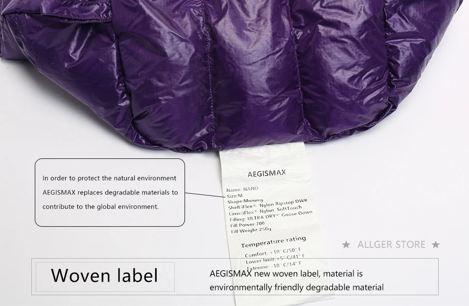 Вес спального мешка: нано: Около 480 г нано Длина: около 562 г