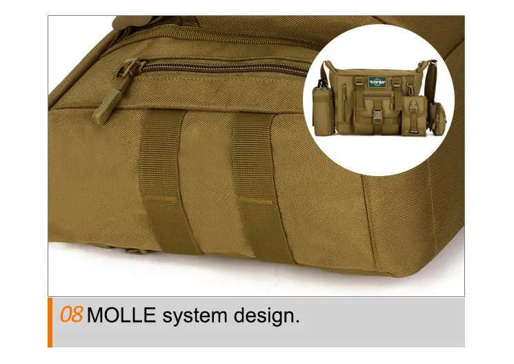Он может держать много вещей, таких как 14 дюймов ноутбук, A4 журнал, ipad mini, ipad, телефон, кошелек и другие. Это система molle, так что вы можете загружать карманы, мешок бутылки воды, наборы аксессуаров и другие сумки. Очень удобный. Комплектация: 1 * сумка через плечо. (Включает только сумку)