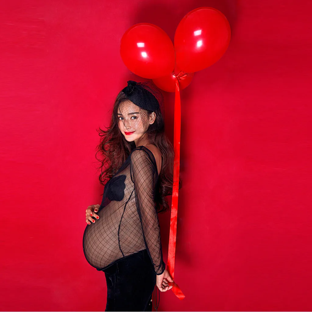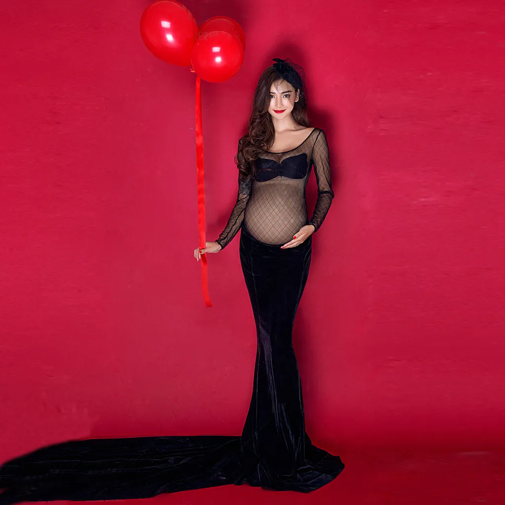 Женское платье для беременных с длинными рукавами и сплошным сетчатым шлейфом